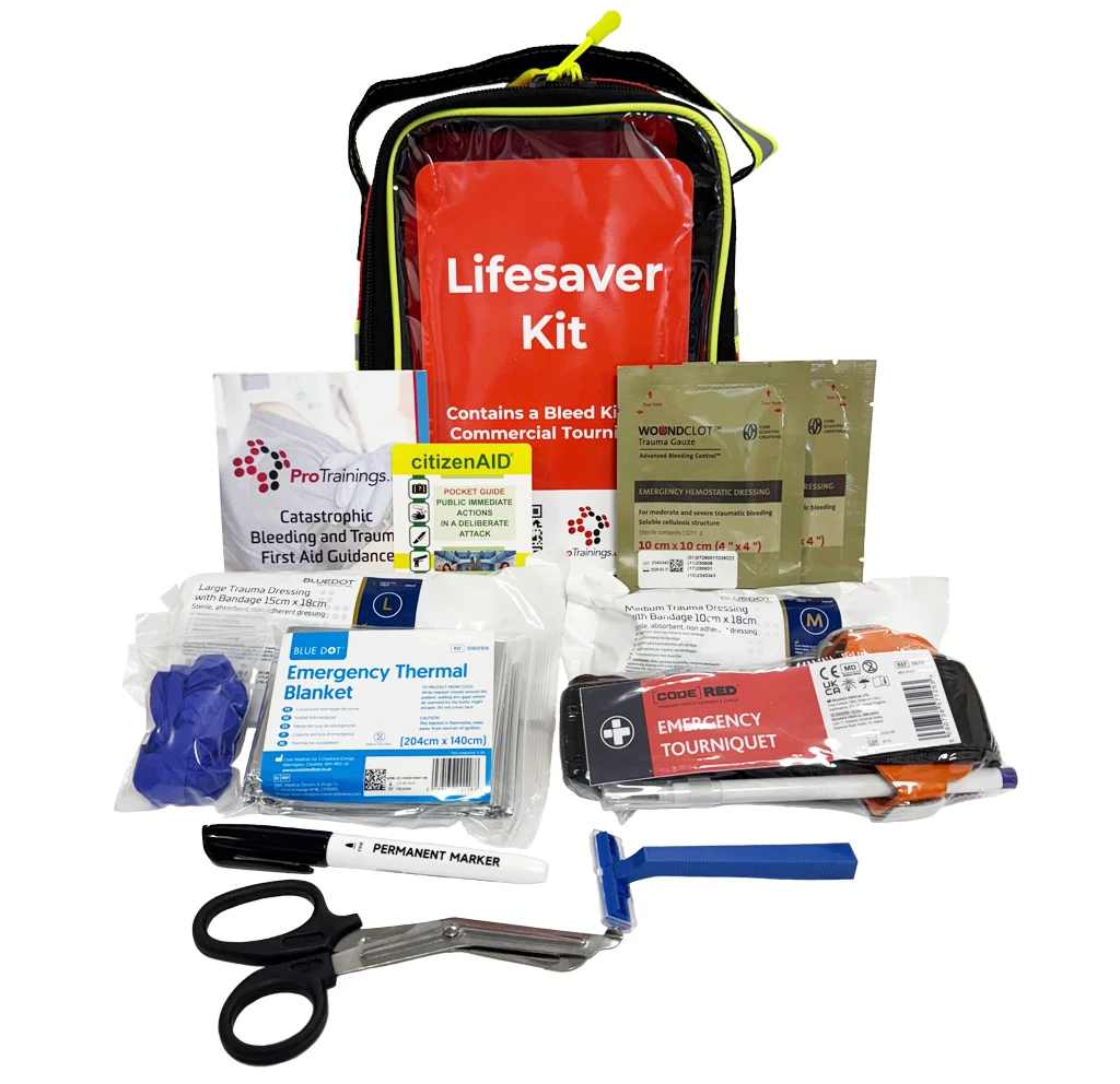 - 2 x WoundClot Haemostatic Dressings (10cm x 10cm): Accelerates clotting to manage heavy bleeding.